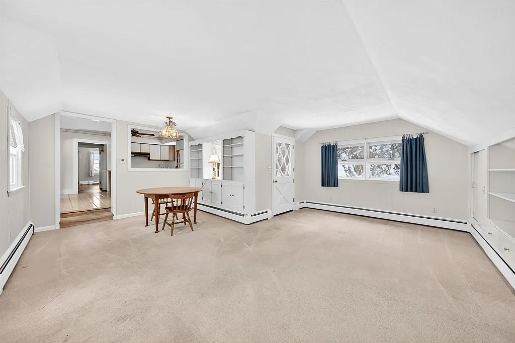 Houses at this most sought after location don’t come available very often. This 4 bedroom 1.5 bath South Dartmouth cape style residence offers versatility and flexibility with its first floor 1300 + square feet. It offers an open floor plan combining the kitchen and what was originally a garage that was turned into a very large cozy family room and where the family spent most of their time over many years. When you walk in the main entrance you will be in a large fireplaced living room with great natural light and gleaming hardwood floors that are also throughout most of the house. There are 2 bedrooms and a bathroom on each level and this property could easily be used as a ranch with one floor living and 2 extra bedrooms upstairs. There is a great deck in the private back yard setting and there is a newer high efficiency heating system also. You do not want to let the outside of this house fool you, it is much larger than it appears and you are moments away from Padanaram Village.