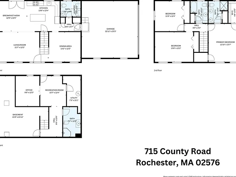 Located at 715 County Road, Rochester, Massachusetts, this is an excellent opportunity for discerning buyers. With only a two-minute drive to Route 495, this property offers a blend of comfort, space, and convenience for the commuter! With three full bathrooms and an additional half bathroom, mornings will become effortlessly streamlined, ensuring personal space for everyone. The home features three bedrooms! Play and relax in the partially finished, heated basement. The 24 x 24 garage includes an oversized 10×20 door to accommodate larger vehicles and additional storage capacity. The residence offers 1872 square feet of living area, providing a generous environment for relaxation and entertainment. The property extends to 98,010 square feet, perfect for recreation and enjoyment. A large capacity propane fueled generator is included for added security and comfort. Use 3 Bob’s Road, Middleboro for accurate GPS directions. Inaccurate directions using legal street address.